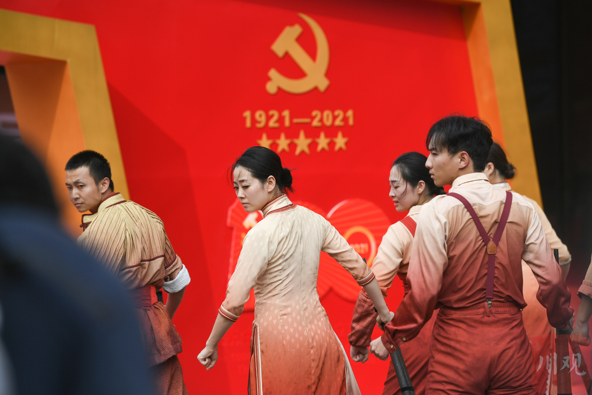 “要是可以重新活一盘,我还要再搞努力餐,让老百姓全都吃饱饭,天下太平没得战乱……”10月1日时值国庆节,四川获得中国舞蹈最高奖“荷花奖”的舞剧《努力餐》剧组30多位演员们来到成都天府广场、宽窄巷子努力餐楼进行街头快闪,为老百姓精心烹饪了两场文化美餐,把舞剧里的红色党史故事从舞台带到街头。