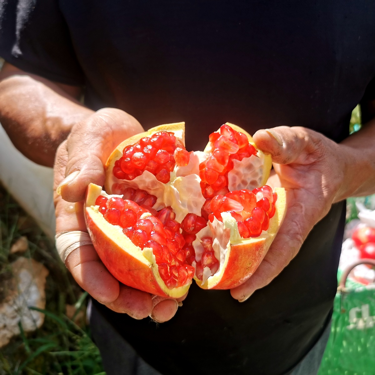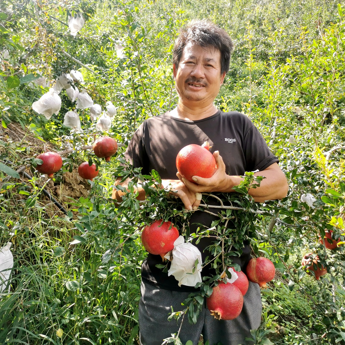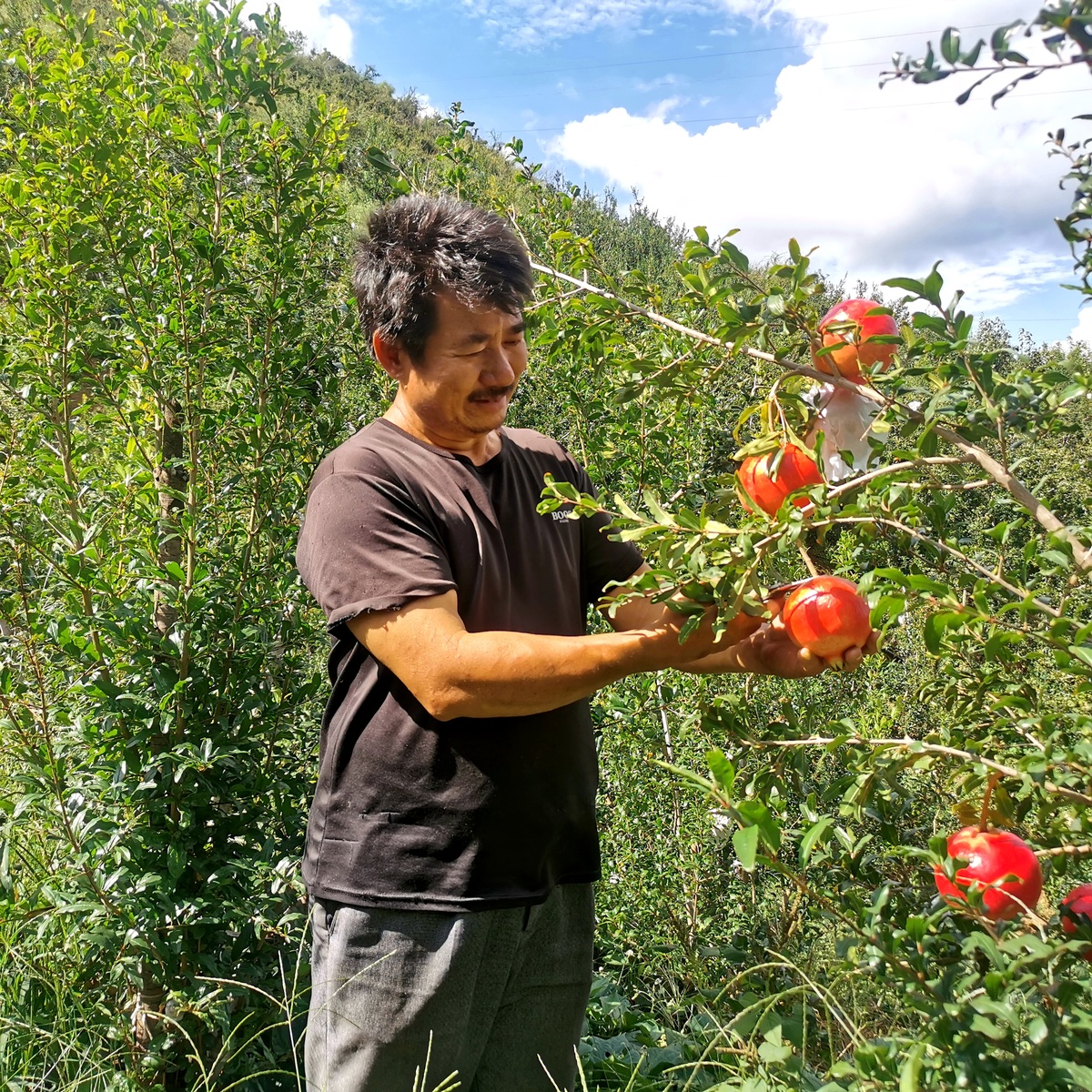 让王天祥欣喜的是,今年家中7亩石榴实现丰产,产量约3万多斤,相较往年增产近两成。石榴季接近尾声,王天祥是村里小有名气的石榴种植能手,家中仅剩的几十株石榴,早被收购商相中,根本不愁销路。