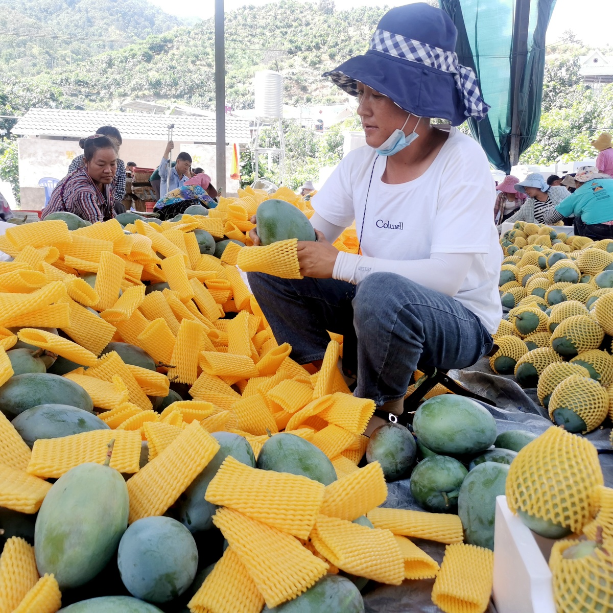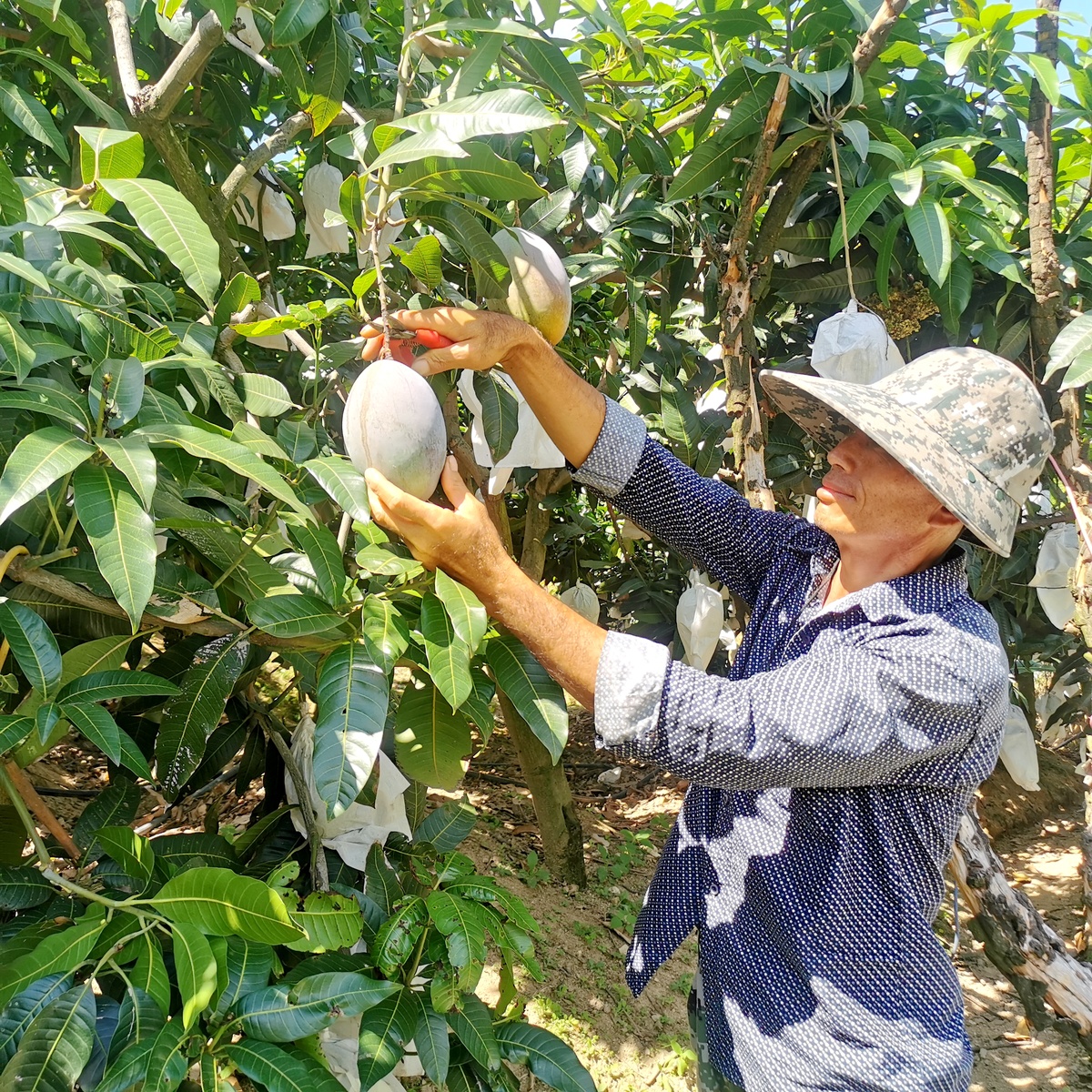 同一时段,仁和区仁和镇红旗村的芒果集散中心,10余名村民围坐在一起,将新鲜采摘的芒果层层分选,小心翼翼地放进精美包装箱,等待收购商前来提货。“今年村里的芒果不仅口感好,还结得好,平均每亩产量增收30%左右。”红旗村二组村民小组长廖有明赶来帮忙,作为村里的芒果种植大户,他家近30亩芒果今年产量达7万多斤,早已全部售完,心头的石头落了地。