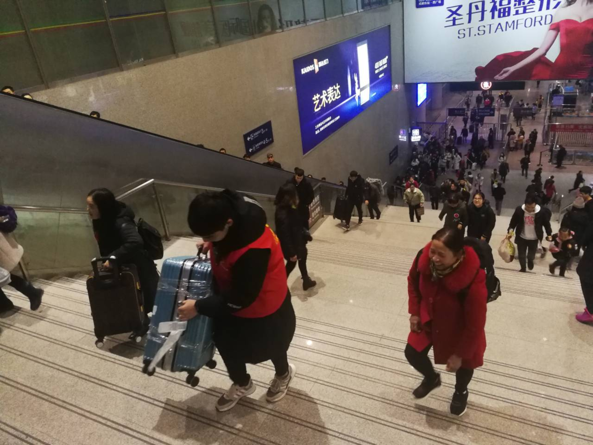 “我出了好多汗,后背都打湿了。这几天明显感觉客流量增加了不少,过几天春节就到了,好多人要回家过年。”志愿者服务队队长告诉记者,春运期间志愿服务比往常要辛苦许多,“最忙的时候,一上午都没时间喝一口水,确实很累,但也非常值得。”