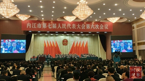 1月18日上午,内江市第七届人民代表大会第六次会议开幕。内江市人民政府市长郑莉代表市政府向大会作政府工作报告,回顾2019年内江市经济社会发展情况,并对2020年工作进行部署安排。