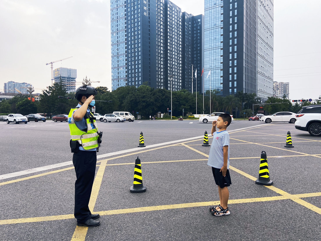 坚守背后是民警的默默付出。在天府大道石化大厦卡点,成都天府公安华阳派出所民警杨智杰手持钢枪,和队友一丝不苟检查过往车辆,而他的儿子则在马路边站着军姿“陪着”爸爸。从下午14时到17时,三个小时的“较量”让父子俩成为卡点上的一道亮丽风景。“节假日一般都在值班执勤,常常无法与家人相聚。这次带着儿子来站岗,也是一次别样的团聚。”杨智杰笑着说。