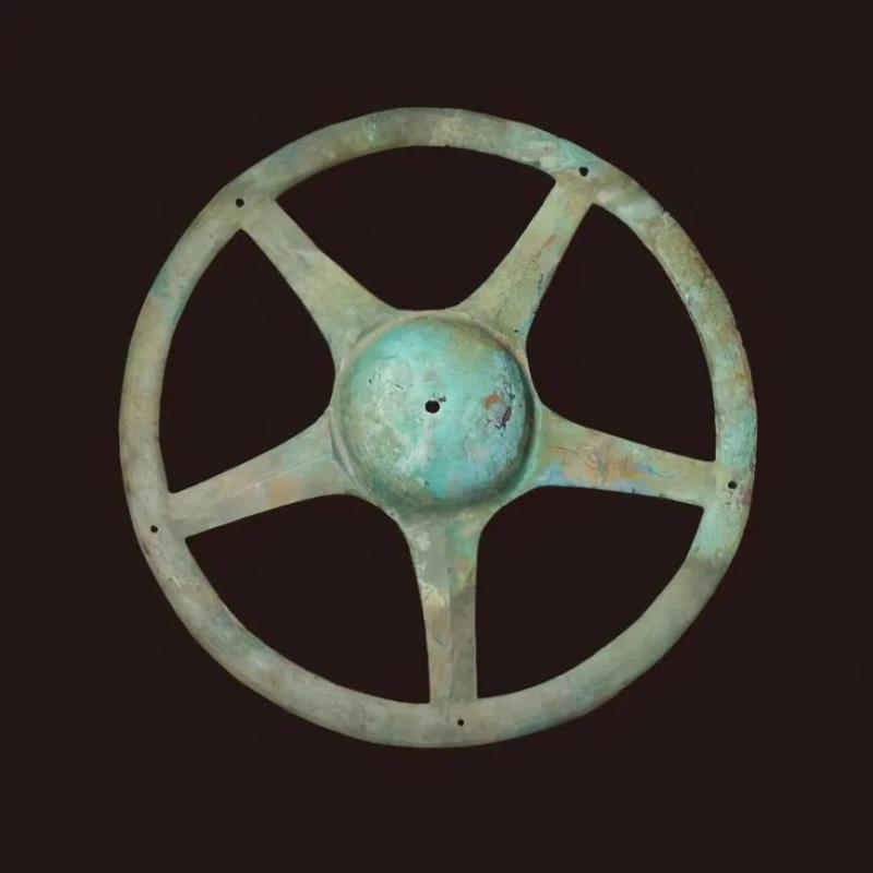 是车轮残件?考古发掘中,并没有车身出土。何况在马拉车的年代,用沉重的青铜做车轮不符合常理。