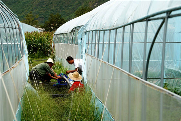吕体勇走进大棚,“红美人”“明日见”等柑橘品种还没有挂果,他笑呵呵地用手清理着柑橘树旁边的杂草。56岁的吕体勇是泸定县兴隆镇沈村一组村民,他工作的大棚就在家门口,位于泸定县柑橘现代农业示范园内。