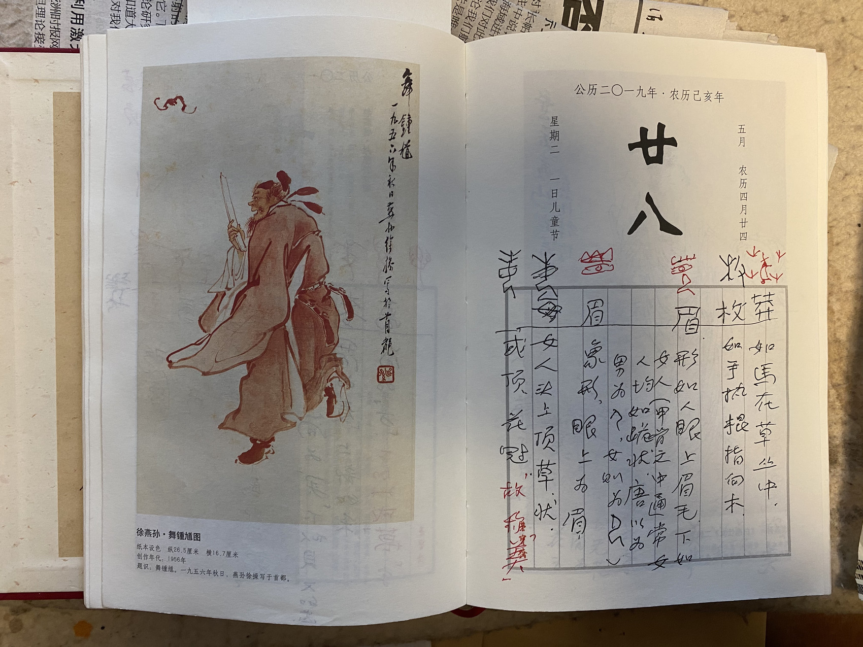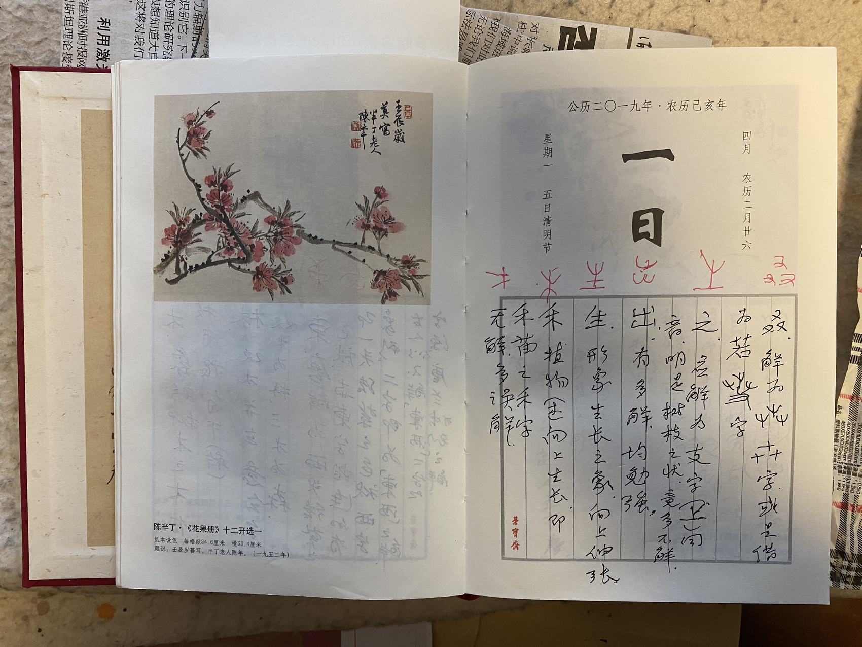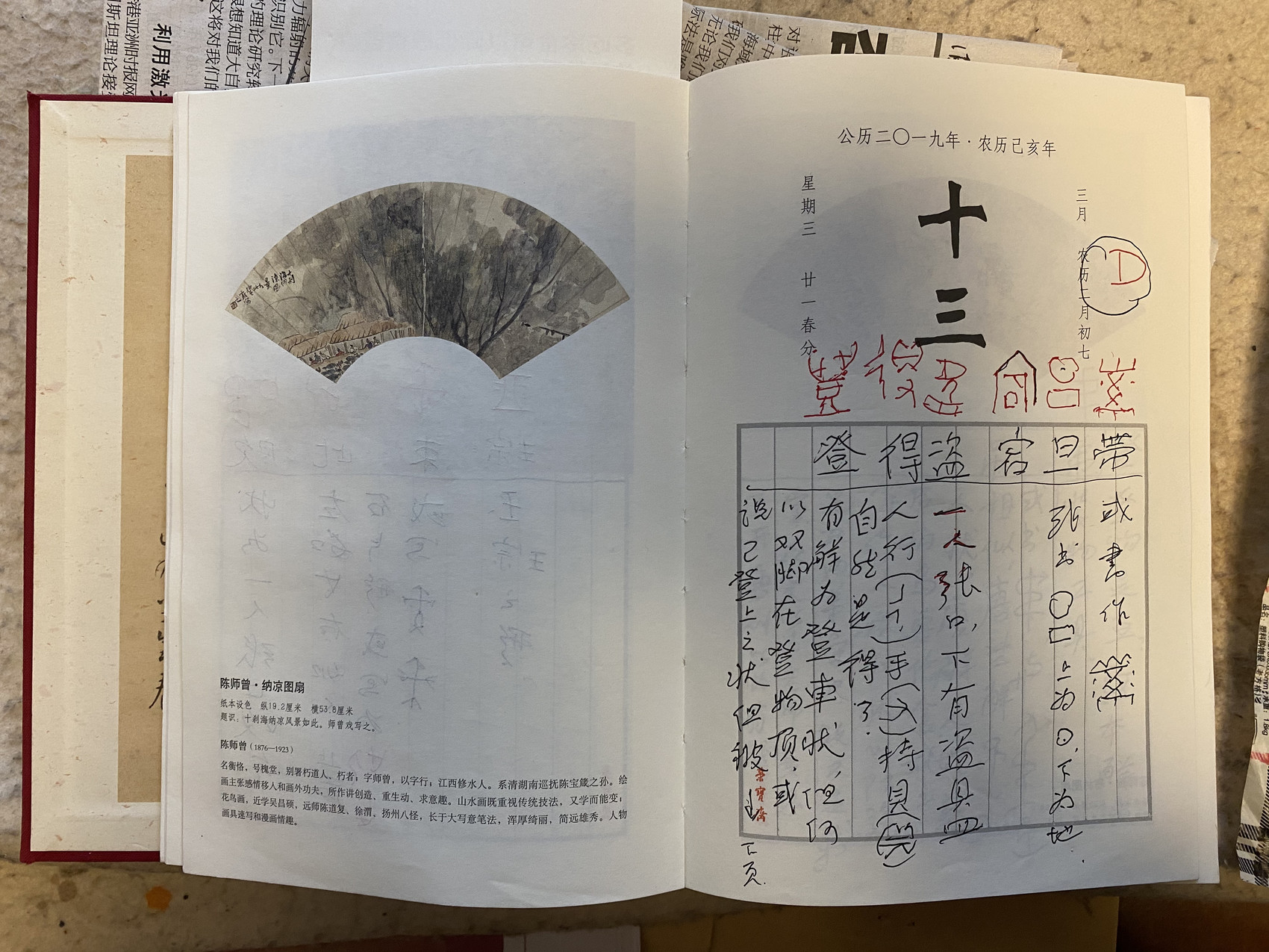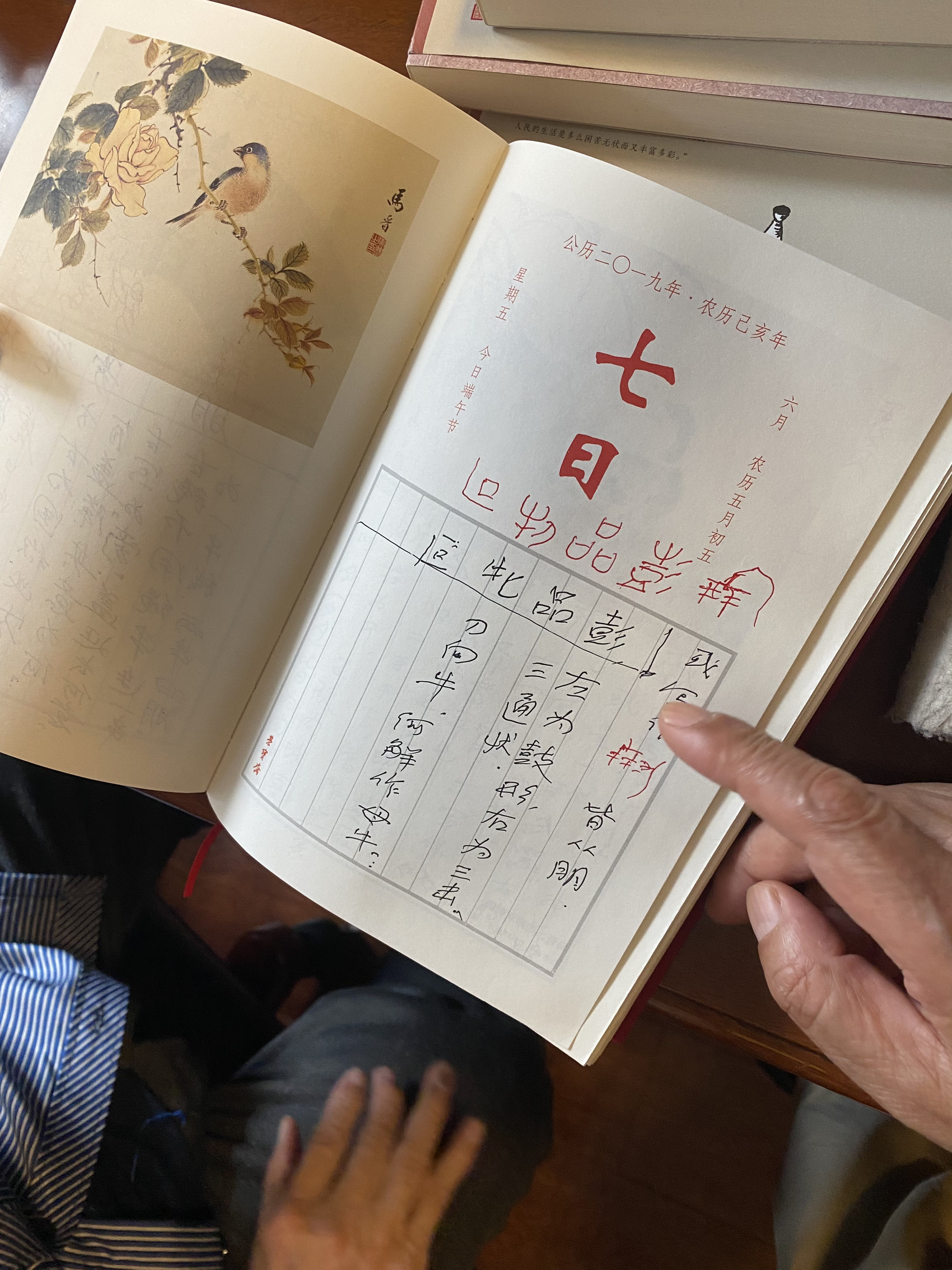 马老在台历上做的甲骨文研究笔记(肖姗姗摄)