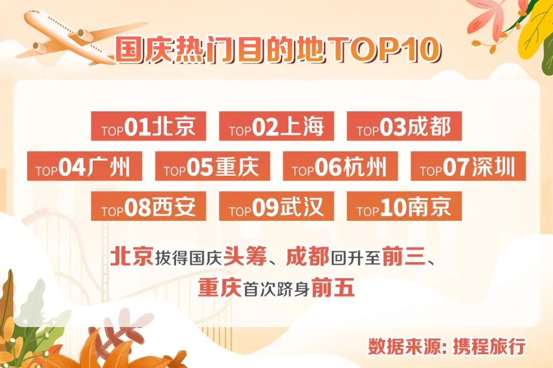 三组数据可以说明:据百度人口迁徙大数据,国庆假期,成都迁入人口热度位居全国第一位;据同程旅行数据,成都假期住宿订单量位居全国第二位,仅次于深圳;据携程、飞猪等大数据,成都均位居全国最热门旅游目的地第三位,仅次于北京、上海。