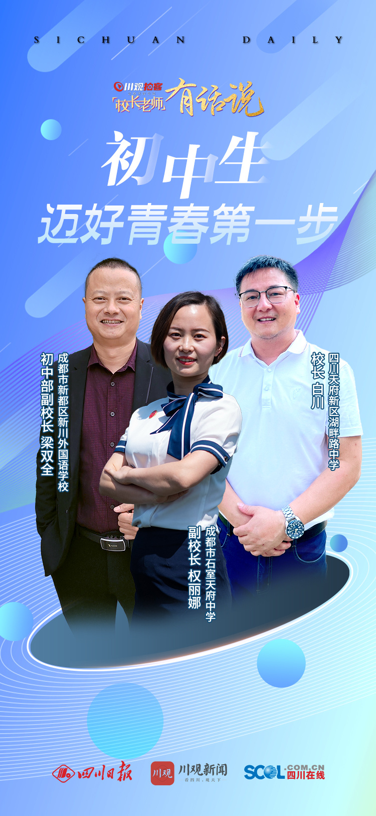 “双减”后开学已经一个月了,第五期《校长、老师有话说》也如约与您见面,成都市3所初中的校长、副校长在川观拍客的镜头前,就初中学生和家长关心的话题,谈看法,提建议。