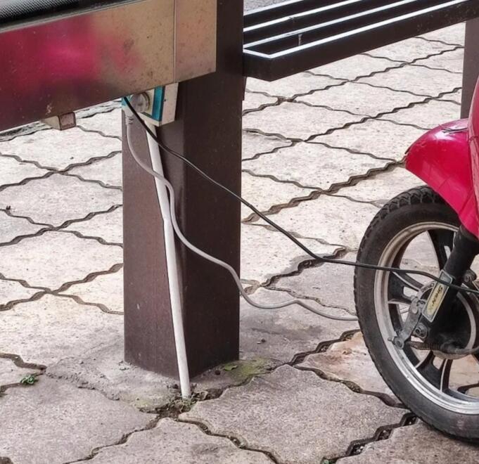 “公交站台人流量大,这样太危险了!”“这个电是从哪里来的呢?”近日,网友爆料在松涛路一段公交站台发现一根白色线管从地砖下冒出来,与站牌柱子上的插座连接,供电瓶车充电,市民对此进行激烈讨论。10月9日上午,资阳市城市管理行政局组织人员现场查看时发现,该线管和插座已被拆除,地面无明显地洞,公交站牌下方还留有一个小孔。