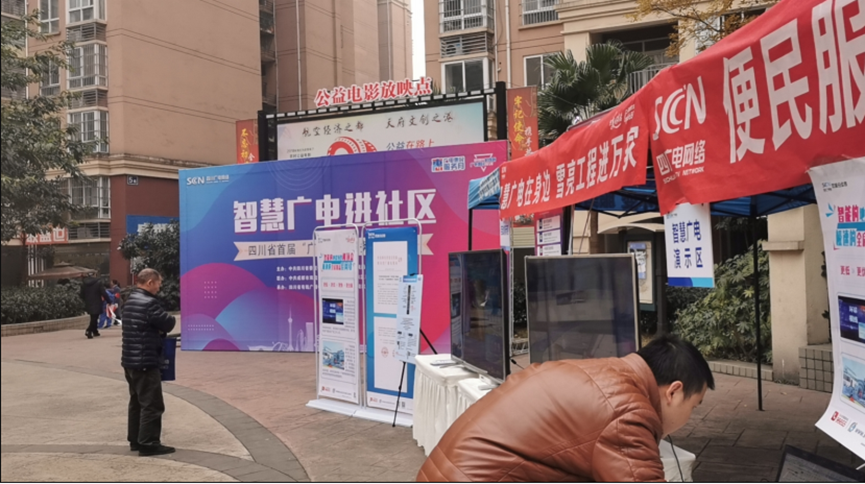 在凉山,月城阳光家园举办了“惠民服务月,智慧广电进社区”活动,活动涵盖智慧业务演示、业务咨询办理、便民服务现场及上门指导、现场抽奖、一元换购、补贴换新等活动,工作人员带着食用油、纸巾等生活用品逐户走访,走进用户家中检测调试信号、分发用户调查表,通过了解用户使用情况、掌握用户实际需求,搭建起广电与社区群众沟通的桥梁。