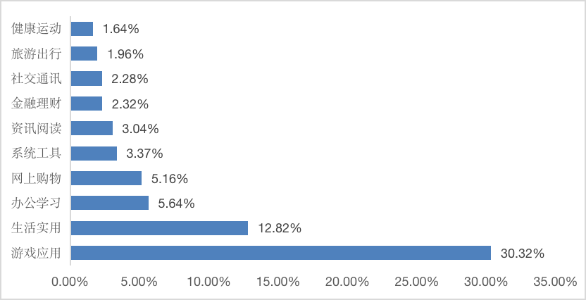 今年1—8月,四川未加固移动应用的功能分类分布TOP10