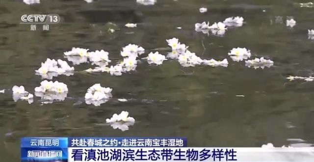 先说植物,这里有蔷薇科植物群落、水杉植物群落、滇池原生海菜花群落等十二个植物群落101个种类。这些漂浮在水面上的小白花就是海菜花,只是在水质特别好的区域,它才能成活、生长。可以说,它也是见证滇池水质改善的一个风向标。