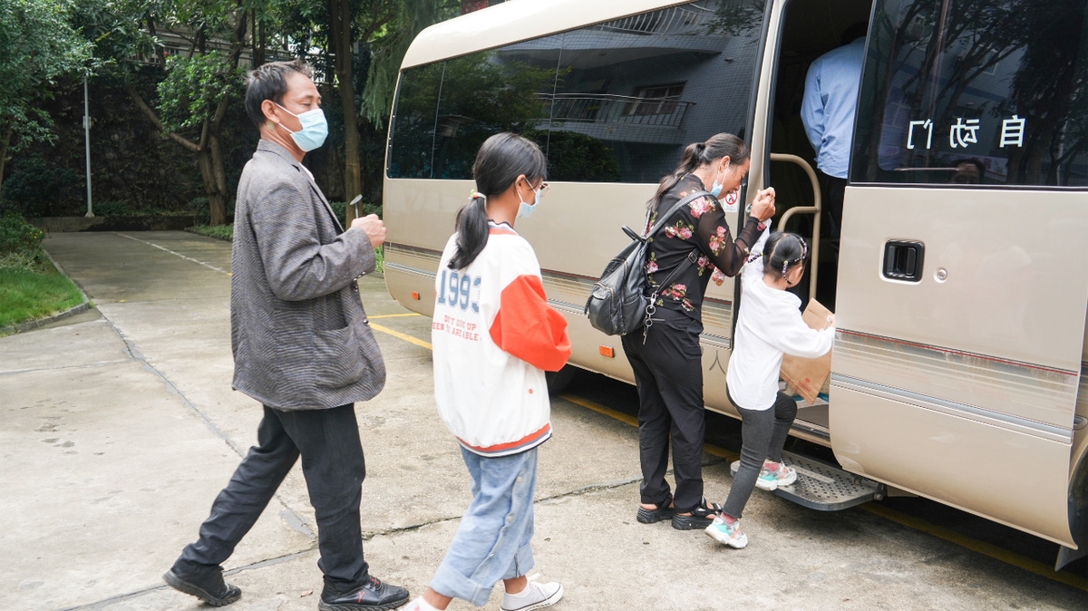 10月11日上午,在省妇幼保健院·省妇女儿童医院米易分院,攀枝花市米易县第一批自愿到四川省妇幼保健院治疗的10名先天性心脏病患儿及家属登上大巴车,满怀希望前往成都。
