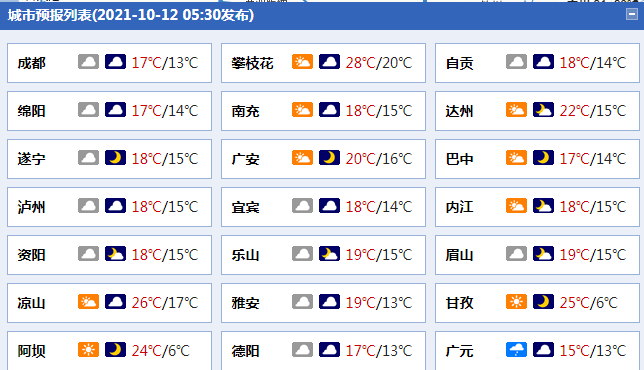 ●四川城市天气预报
