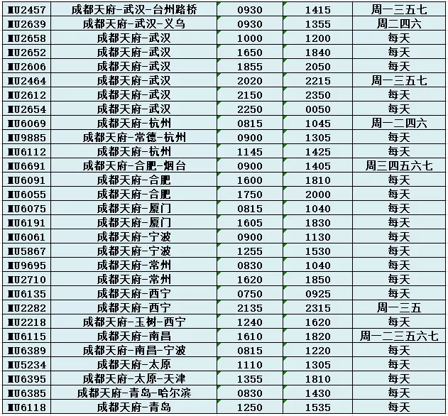 ↑东航在天府机场的新航季出港航班计划