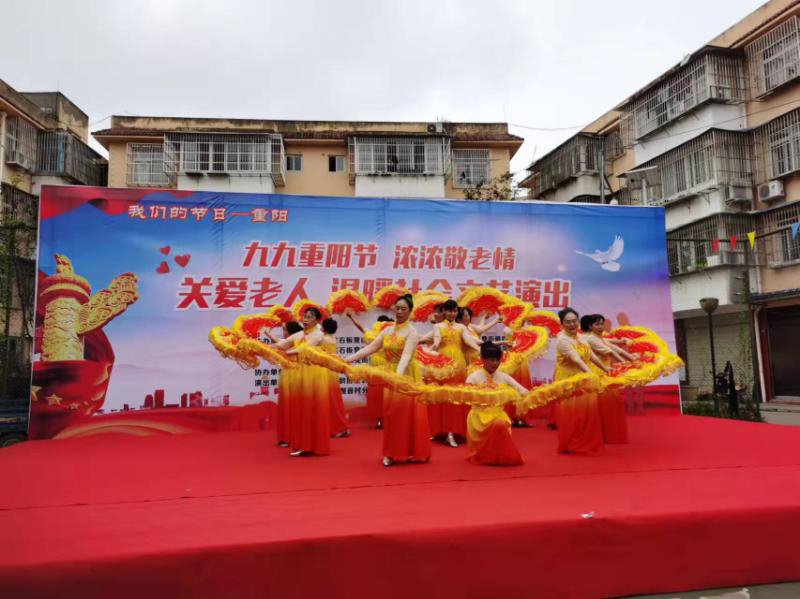 当天,有石板凳街道老人们自编自排自演的舞蹈《祝福祖国》《没有共产党就没有新中国》、腰鼓舞《红色娘子军》、水冰舞《记得咱的家》、唢呐《映山红》、小品《两个媳妇抢婆婆》、独唱《最美的歌儿唱给妈妈》等16个节目轮番上演。老人们个个精神饱满,用歌舞庆祝自己的节日,表达对生活的热爱,展现“老有所学、老有所乐、老有所为、老有所用”的精神风貌。“今天这个活动,让我们这些老年人非常开心,我们感受到了社会对我们的关爱,感谢党和政府能时刻想到我们……”年过七旬的老人鄢素云说。
