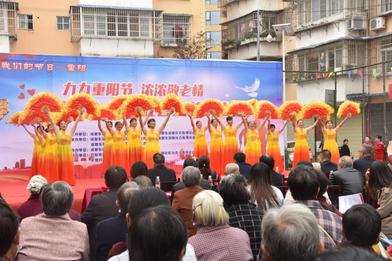 “东方红,太阳升……”10月12日,成都东部新区石板凳街道先锋综合体篮球场内,一曲《东方红》拉开了当地“关爱老人 温暖社会”文艺演出的序幕,为老人们献上重阳节文化大餐。