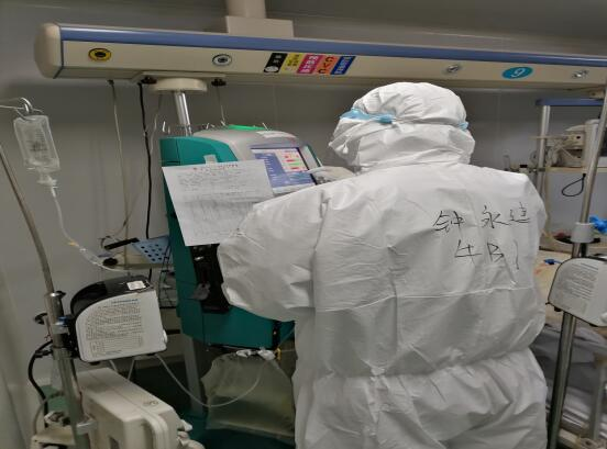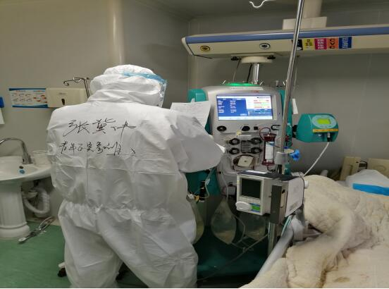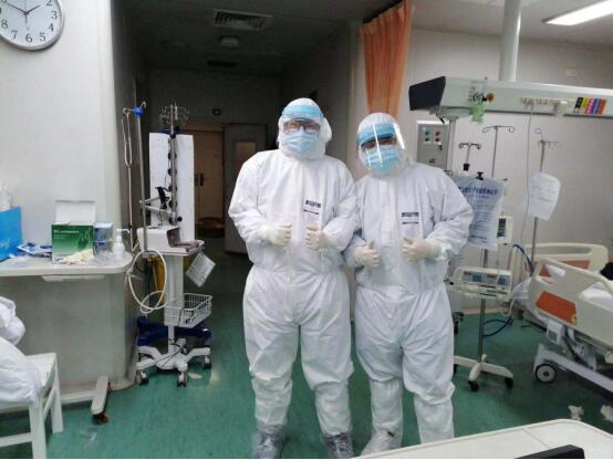说实话,我们两个都是第一次面对如此复杂的救治环境,也是第一次穿上如此严密的防护服,一切让人觉得陌生又紧张。但当我们走进ICU病房的那一刻,一切又变得熟悉起来,熟悉的呼吸机,熟悉的血滤机,牢记于心的各项危重症救治护理技术一下子派上了用场,那时我们全然忘记了自己的安危,全情投入工作希望在有限的时间里救治更多的患者,也希望替连夜奋战的武汉医护同胞多分担救治任务。