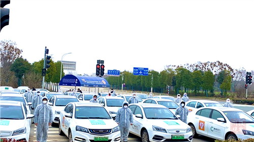 首批出征的曹操出行平台司机身着防护服参与应急防控保障。