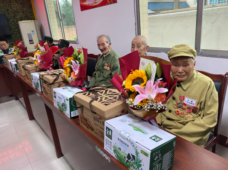 10月13日,重阳节来临之际,在眉山市丹棱县退役军人事务局会议室,一群党员志愿者专程到这里看望了当地6名抗战老兵,为他们送上节日祝福鲜花和牛奶、水果等节日慰问品,并开展了“九九重阳 关爱老兵 让红色精神代代相传”系列活动。