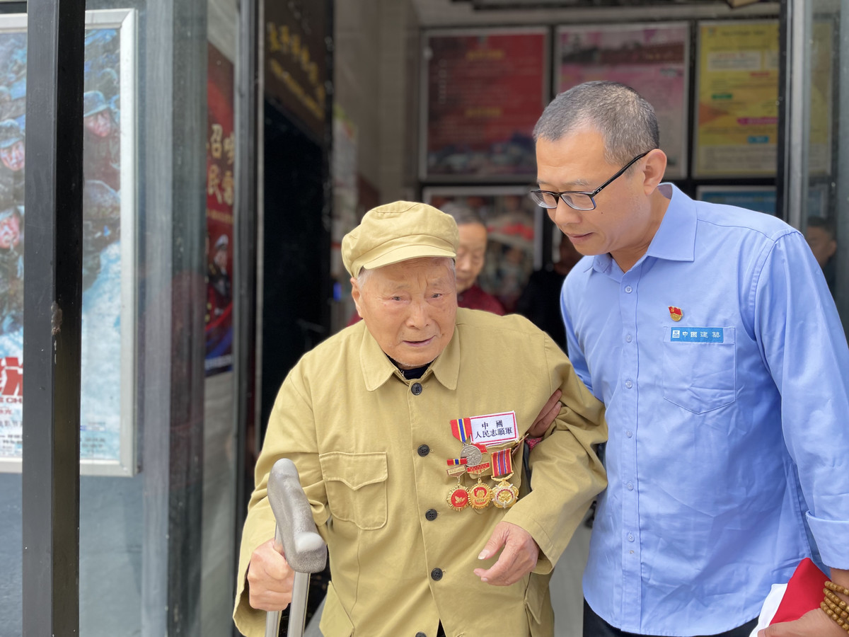 这些党员志愿者来自中建二局二公司华东分公司成都片区项目联合党支部。在活动中,党员志愿者们与丹棱县退役军人志愿者共同聆听了6位抗战老兵讲述当年的抗战故事。