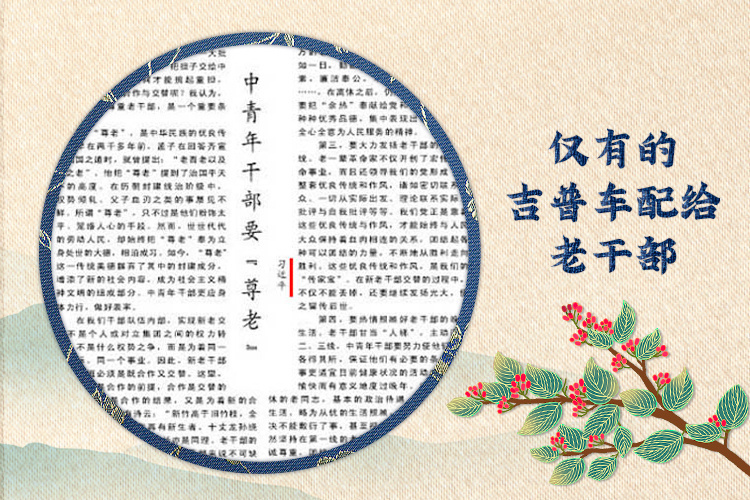 习近平在正定任职时,经常骑着一辆“二八”式自行车下乡调研,却把正定县委仅有的一辆212吉普车配给老干部使用。老干部没有活动场所,他就把县委和县政府合用的大会议室腾出来,改成老干部娱乐室。为照顾好老干部的身体,在习近平的主导下,正定实施了老干部看病优先就诊、开设老干部病房、老干部医药费及时报销等一系列措施,解决了老干部生活中的诸多困难。
