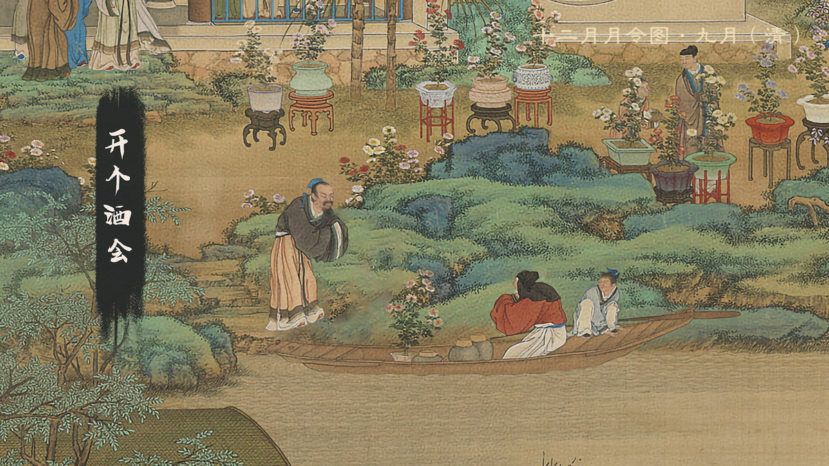 傍晚,便是狂欢之夜,兴致高昂的才子、诗人们,集聚一堂,借着酒意、伴着菊花清香,吟诗作对,抒发心中的热忱,一同度过这美好的一天。