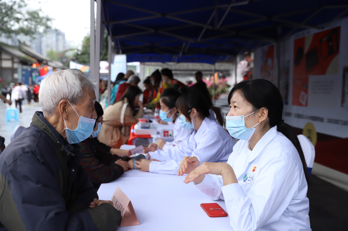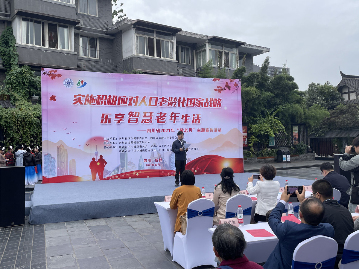 10月14日,省卫生健康委、省老龄办在成都市宽窄巷子广场举办2021年四川省“敬老月”宣传活动。