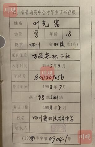 1995年至1998年,叶光富在四川天府新区太平中学(原双流县太平中学)完成了高中三年学业。10月15日早上,川观新闻记者来到太平中学采访。