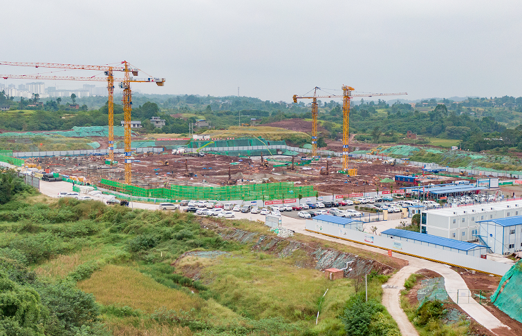 这是隆昌市人民医院西区医院项目如火如荼的建设现场。隆昌市人民医院副院长朱代波站在一旁的高地,工地上的情况尽收眼底。“现在正在进行热泵钻孔等地下部分的施工,已完成1700多根桩基础,自开工以来,每天有一两百人在现场施工,医院预计2024年底投入使用。”