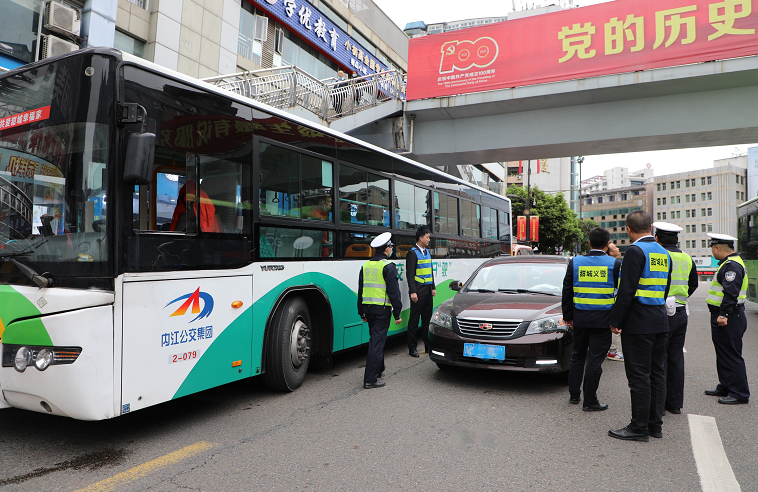10月15日,为规范城市公交车站的停车管理,保障市民乘车安全,内江市公安局公交警务室联合市交警支队直属一大队开展集中整治非法占用公交车站台乱象专项行动,规范公交站点秩序,严厉打击私家车违停及出租车非法揽客行为,为广大市民出行营造良好的出行环境。