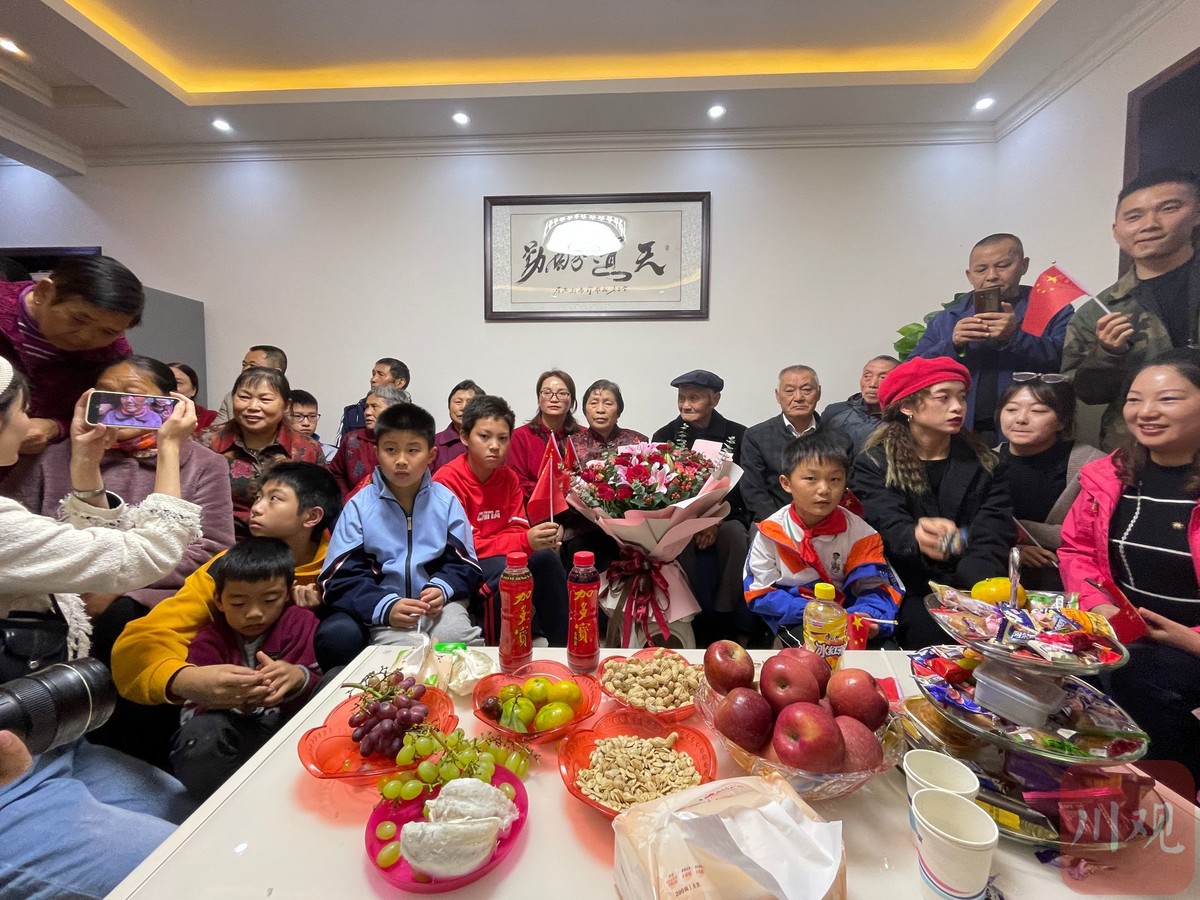 10月16日0时,川籍航天员叶光富家中,亲戚朋友齐聚一堂,叶光富的母亲刘绍林身着红袄,坐在沙发最中间,看到这一幕,现场有亲戚向记者透露,10月16日发射当天,农历九月十一,是老人68岁生日。