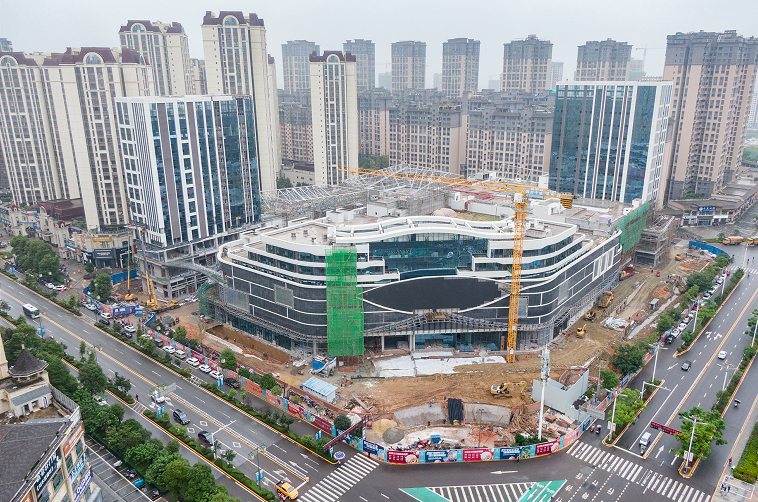 据悉,整个项目占地50亩,是由4.6万方购物中心、1万方主题商业街、1.8万方中高端酒店、精装公寓及地下车库构成的纯商业项目,于2019年6月20日开工,正朝着今年底竣工的目标奋进。