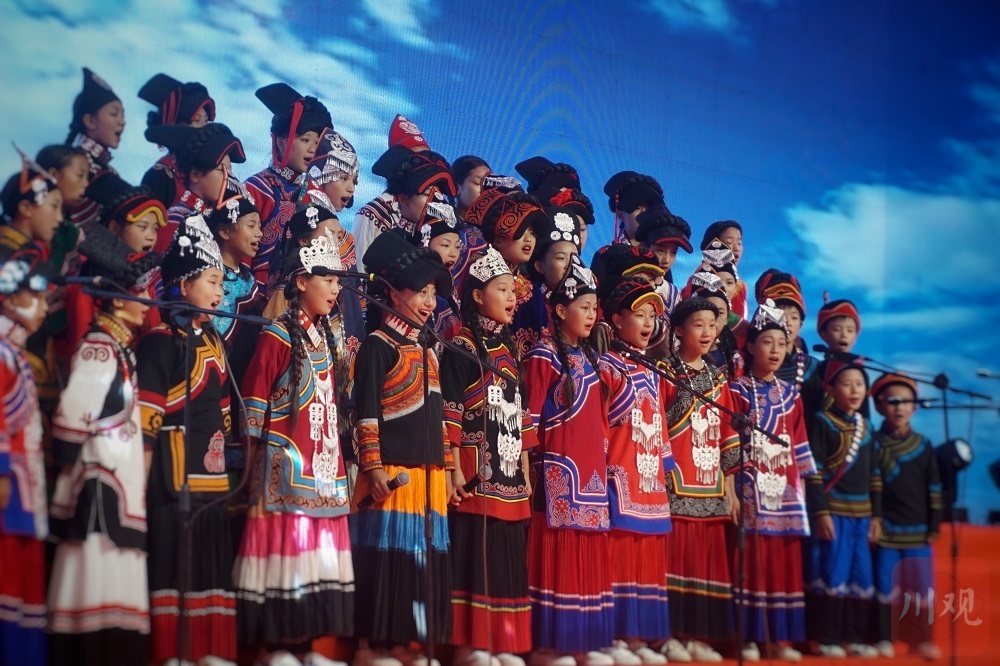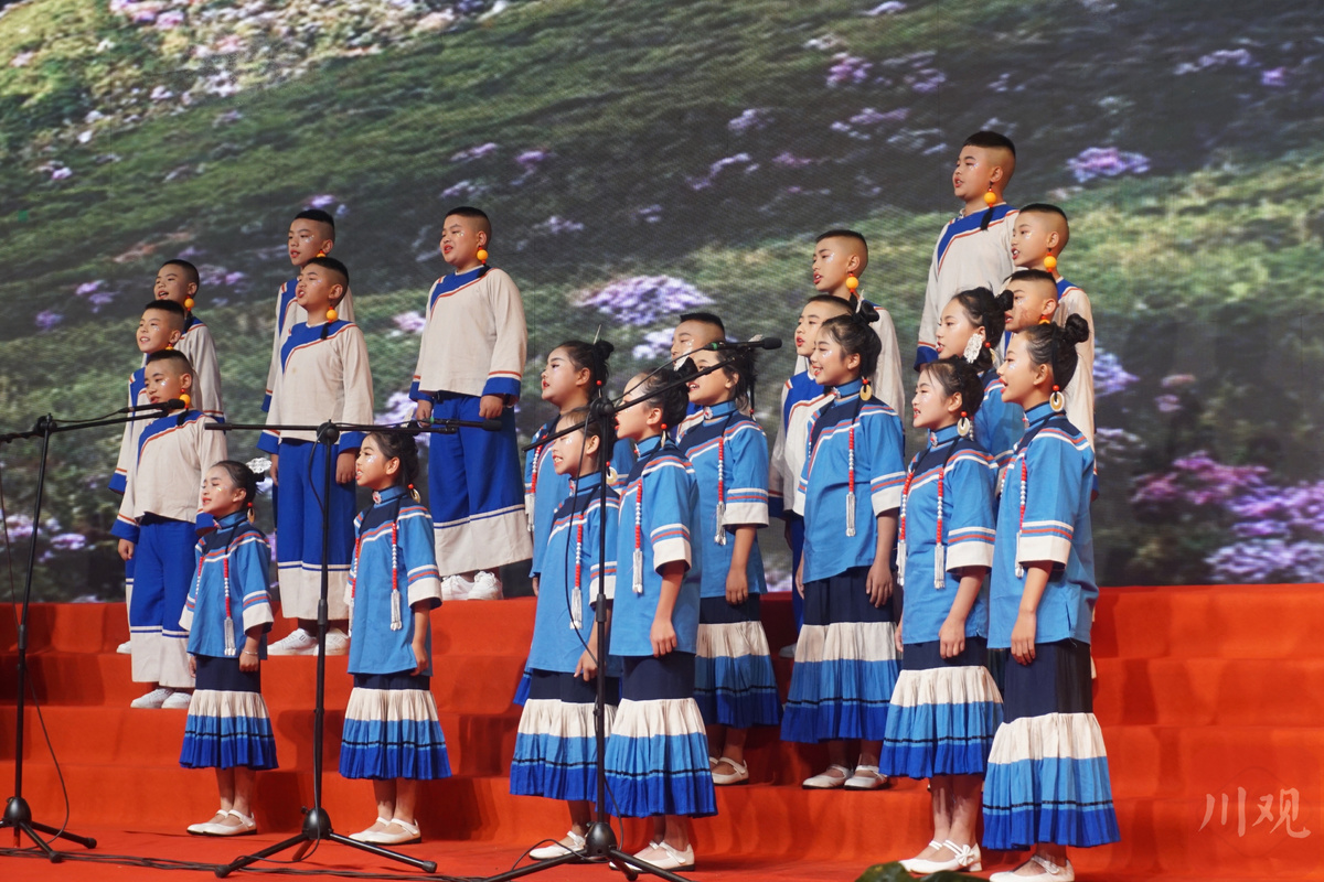 “五千年,五千岁,少年炼成钢。一点点,一滴滴,步步响当当……”米易县第一小学校 哆来咪合唱团一首《中国少年》,描绘新时代的少年模样;凉山州喜德县喜德瓦尔学校久诺彝族童声合唱团演唱的彝族古老传统民歌《古嫫阿芝》,借大雁抒怀,感动全场观众;“国旗升在朝霞里,红星亮眼睛里,歌儿唱在欢乐里,我们长在幸福里……”德昌县第二完全小学乐雅合唱团带来的歌曲《祖国在我心窝里》,唱出对祖国的满心热爱。