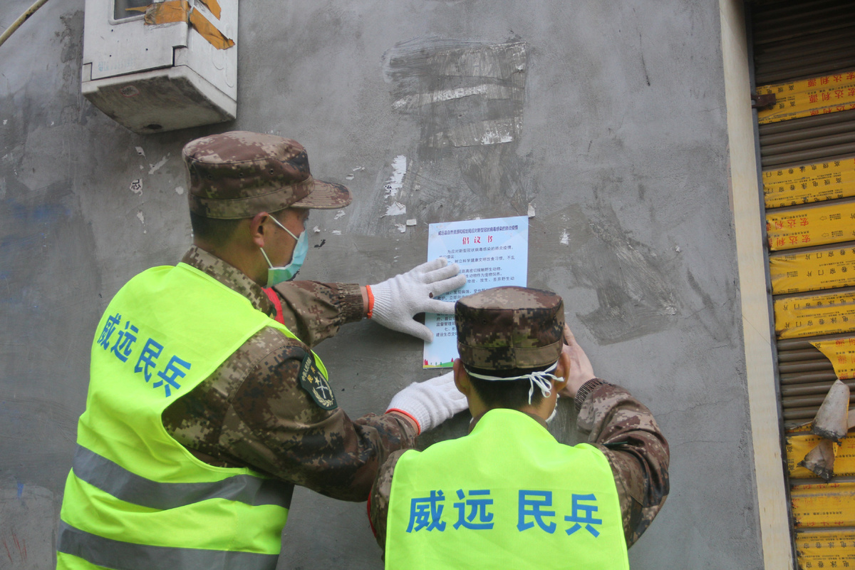 威远民兵充分发挥突击队、生力军作用,深入全县14个镇宣传新型冠状病毒肺炎防治知识,让群众知道新型冠状病毒肺炎可防、可治、可控,消除群众恐惧心理;深入21342户群众家中,开展全覆盖入户排查,采集人员身体状况、外出时间、地点等信息,为全县重点跟踪防治打下坚实基础;配合卫生防疫人员、公安在全县各边境路口、交通要道设置63个防新型冠状病毒肺炎检测站,对11133台出入境车辆和36504人进行疫检,防止疫病传入传出;配合卫生防疫人员对县城、各镇街道、居民楼进行消毒,进一步降低交叉感染风险。