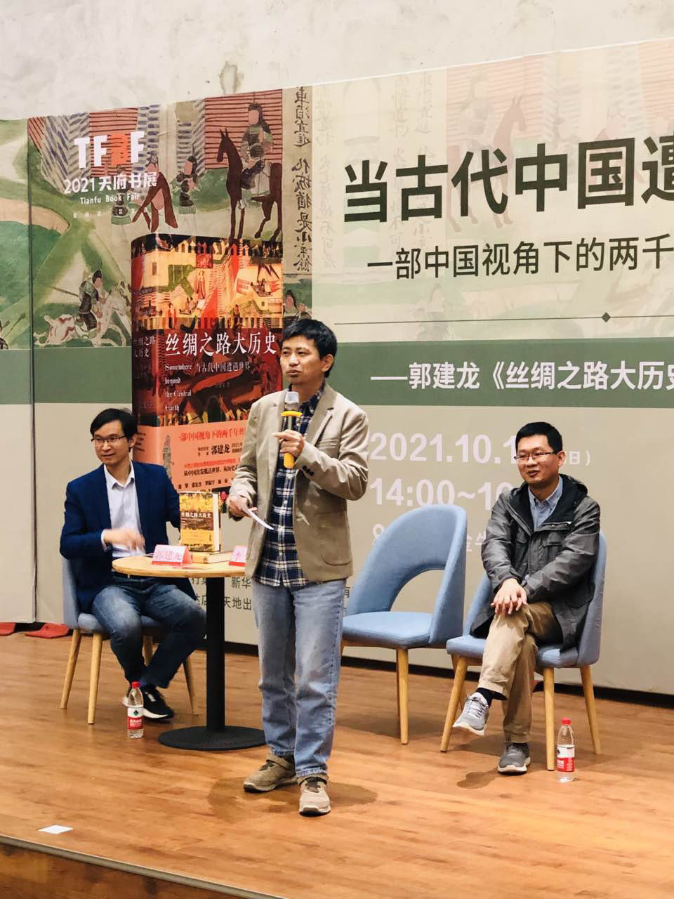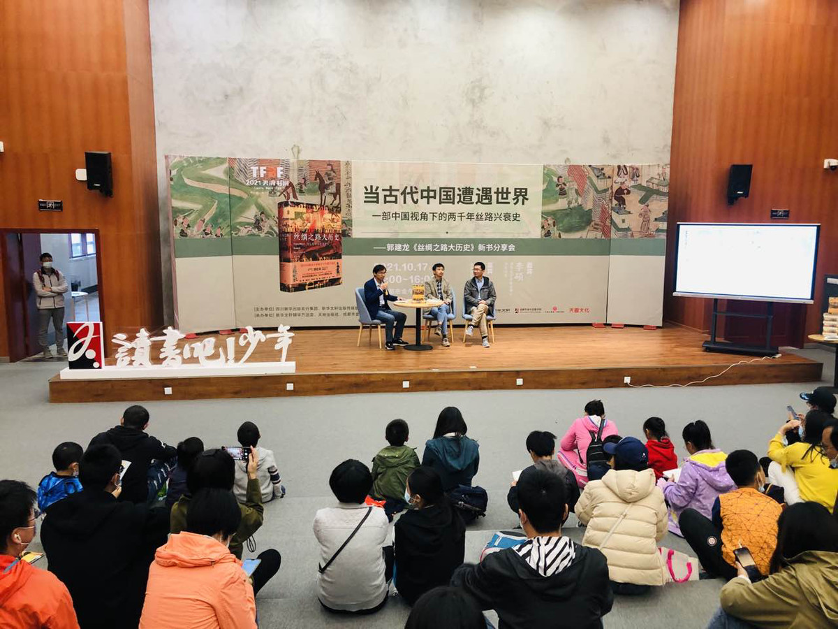 10月17日下午,作家郭建龙携其由天地出版社出版的新书《丝绸之路大历史:当古代中国遭遇世界》现身2021天府书展分会场金牛区图书馆,以“当古代中国遭遇世界:一部中国视角下的两千年丝路兴衰史”为主题,和清华大学历史系博士、历史作家李硕展开热切探讨,并与现场读者分享了两人从不同的视角看待丝绸之路兴衰演变的独到收获。该书由天喜文化策划、天地出版社正式出版发行,是一部古代中国与西方世界两千年的文明交流史,也是一部中国视角下的丝绸之路形成、兴盛、演变和衰弱的宏大历史。