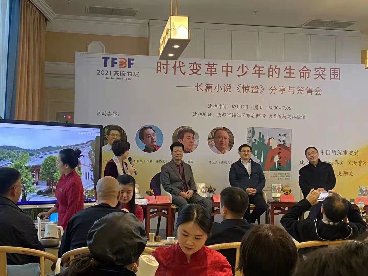 10月17日下午,作为四川天府书展活动之一,“时代变革中少年的生命突围——长篇小说《惊蛰》分享与签售会”在大益茶超级体验馆春熙路店隆重举办。