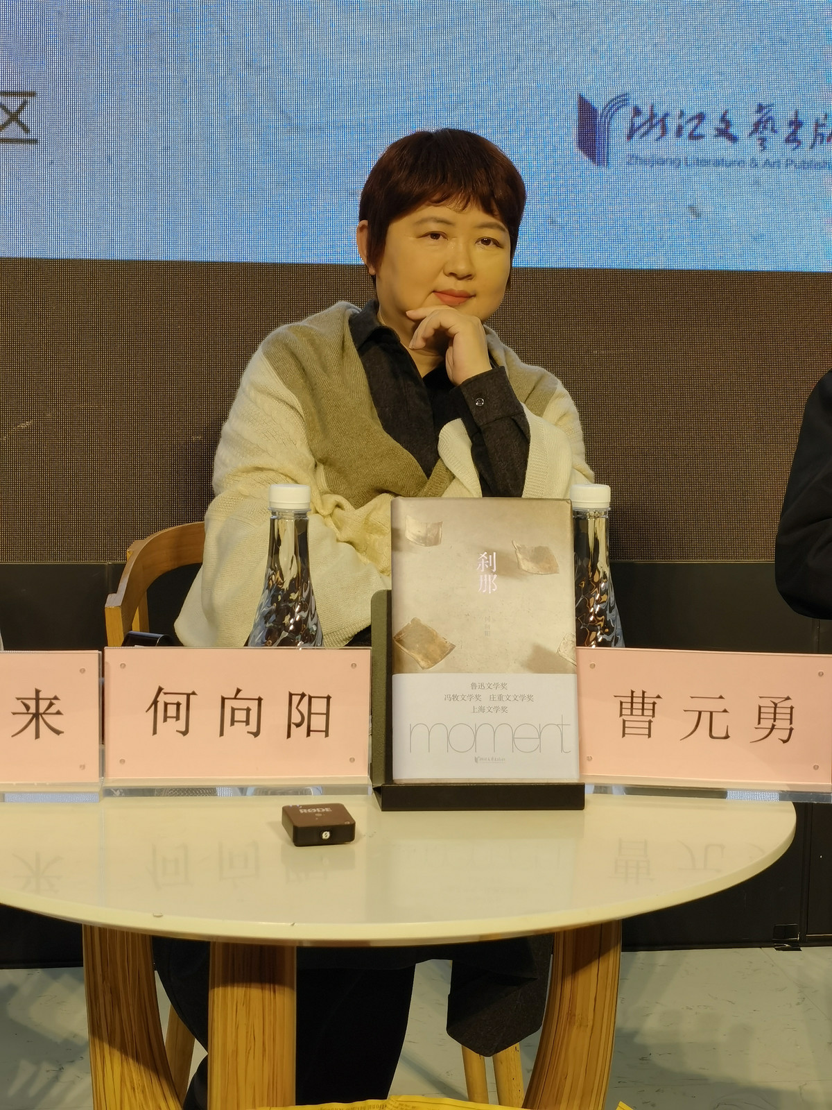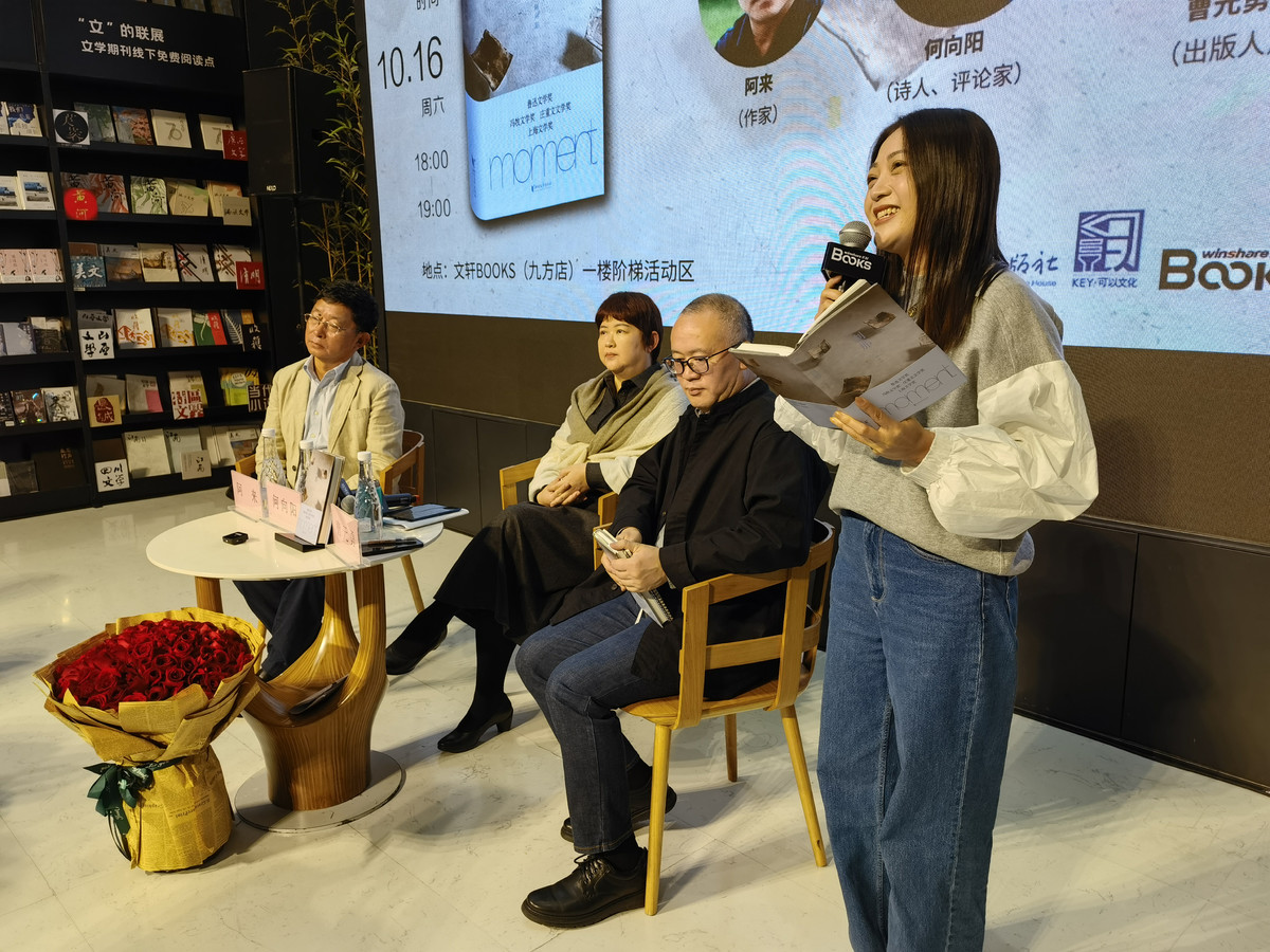 近日,作为四川天府书展活动之一,在文轩BOOKS九方店,“刹那与重生——何向阳诗集《刹那》分享与签售会”举办,著名作家、茅盾文学奖得主阿来,诗人、鲁迅文学奖得主何向阳,与浙江文艺出版社常务副社长曹元勇一起,就何向阳的诗集《刹那》展开了精彩的对谈。