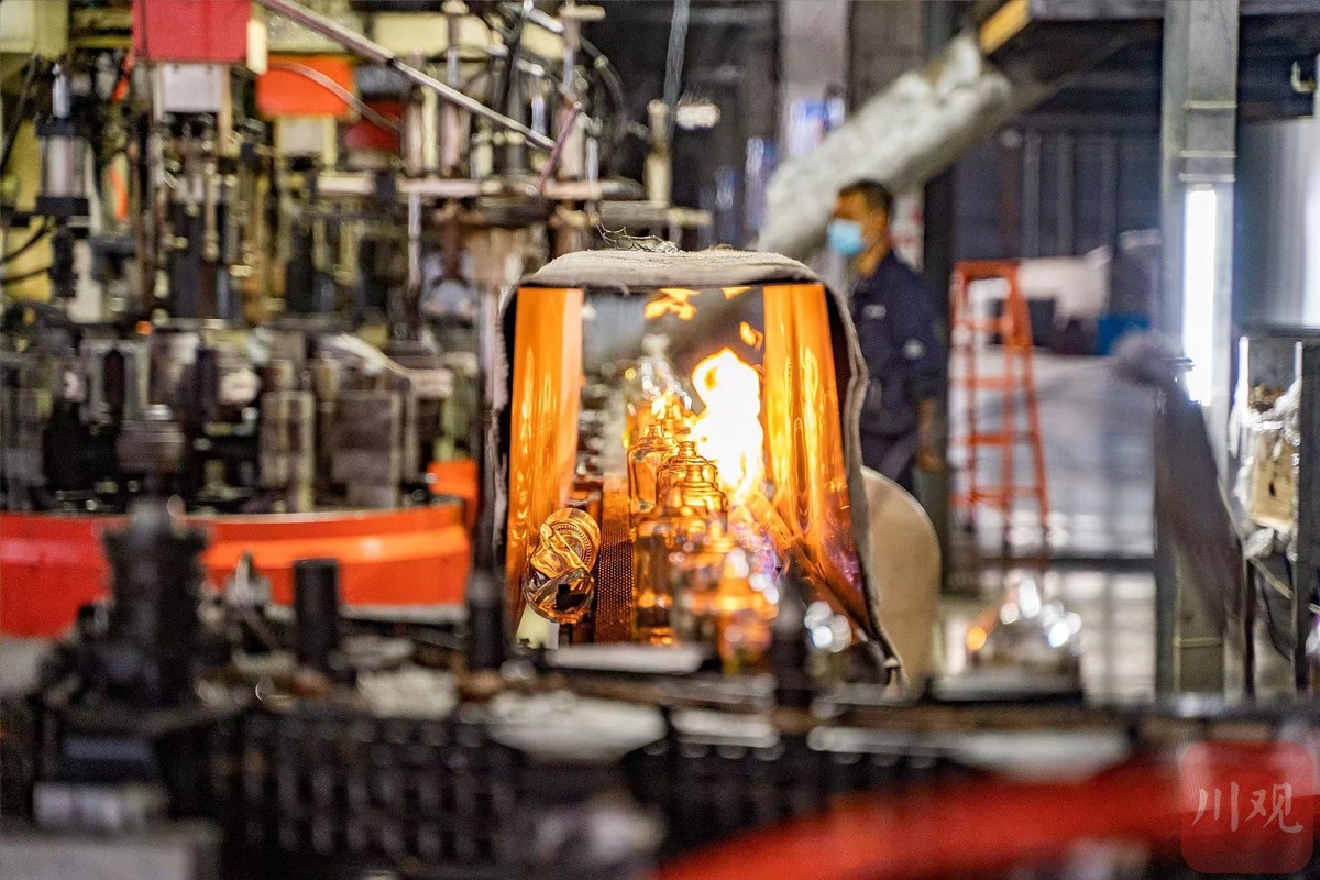 在该企业生产车间,员工们会用肉眼仔细查看成品瑕疵情况,将不合格的酒瓶投入回收区。“玻璃产业在大众眼里可能不太高级,但玻璃制品有一个好处,次品可以回炉再利用,相对更加环保。”该企业董事长张鸿介绍。