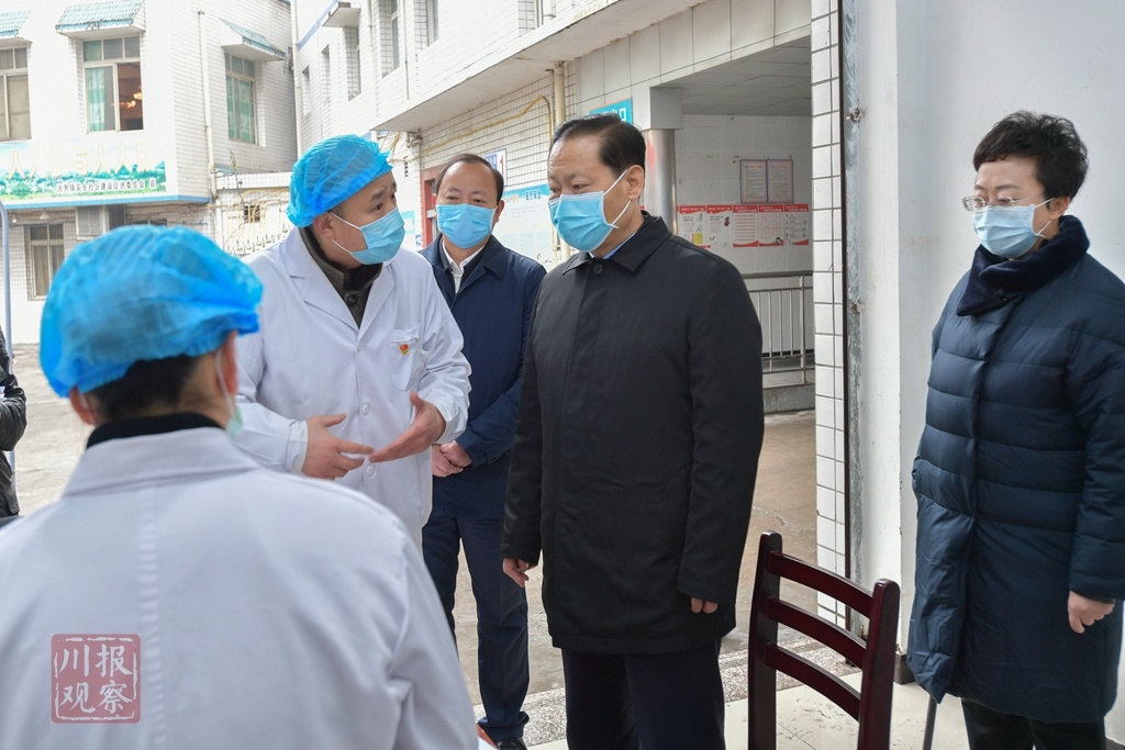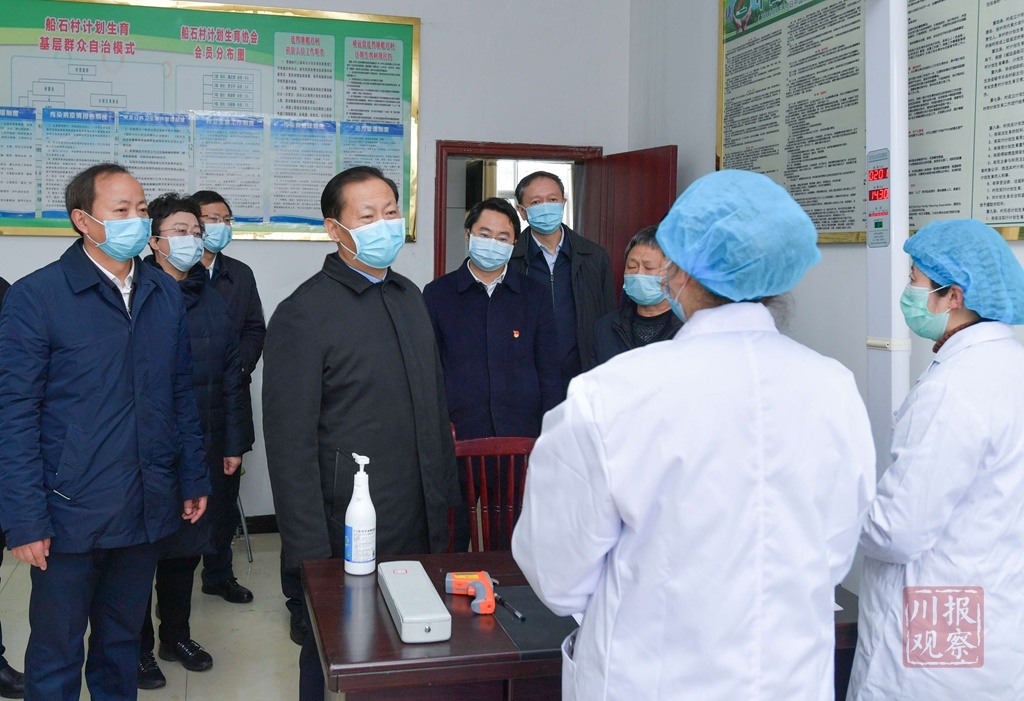 2月1日,省委书记彭清华在威远县连界镇船石村卫生室了解村医开展发热预检等工作情况。