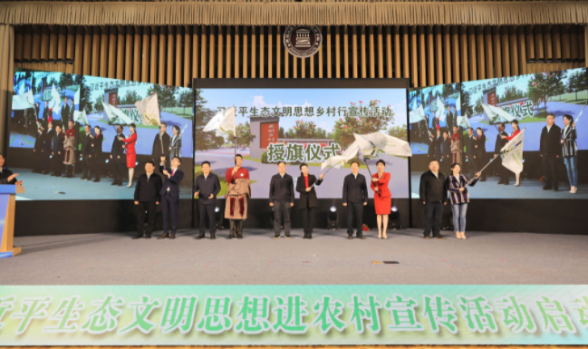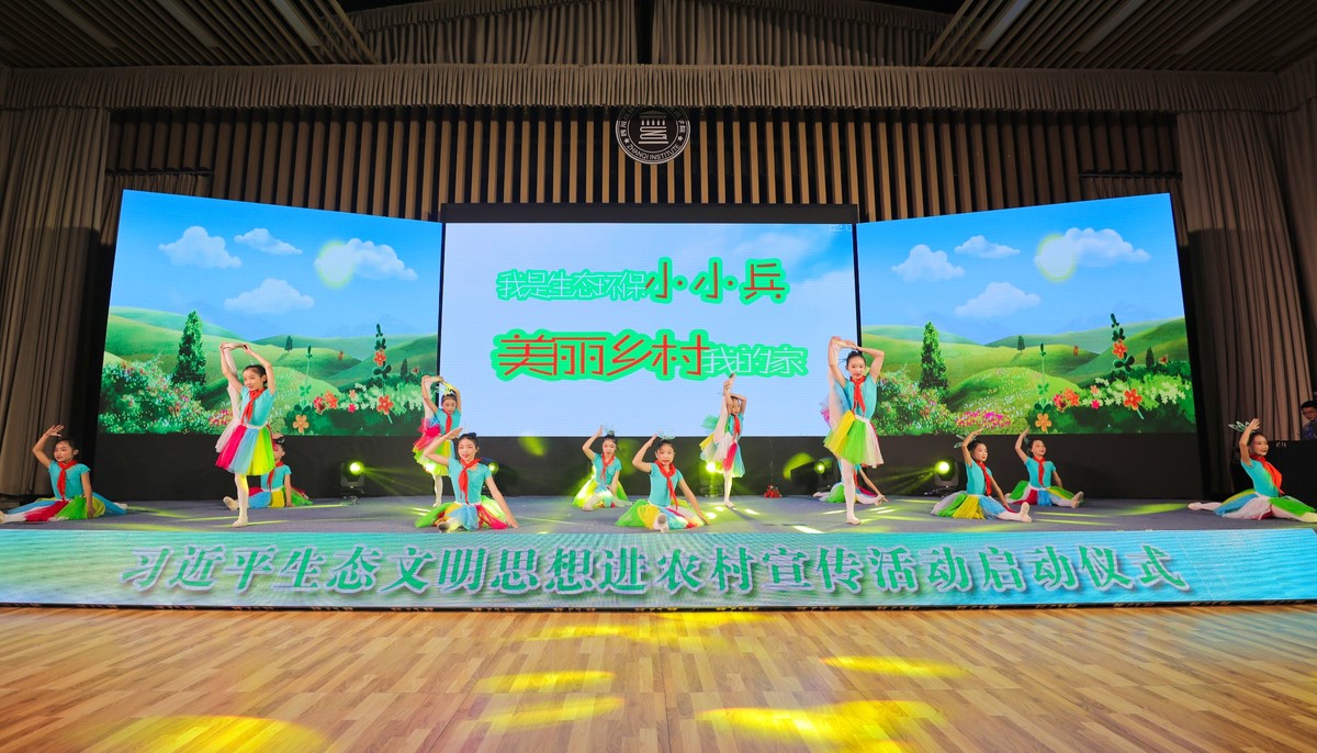 一支欢快的舞蹈《生态环保小小兵》拉开了仪式的序幕,活动还为习近平生态文明思想巡回成都平原、川东北、川东、川南和攀西片区宣讲团代表授旗。