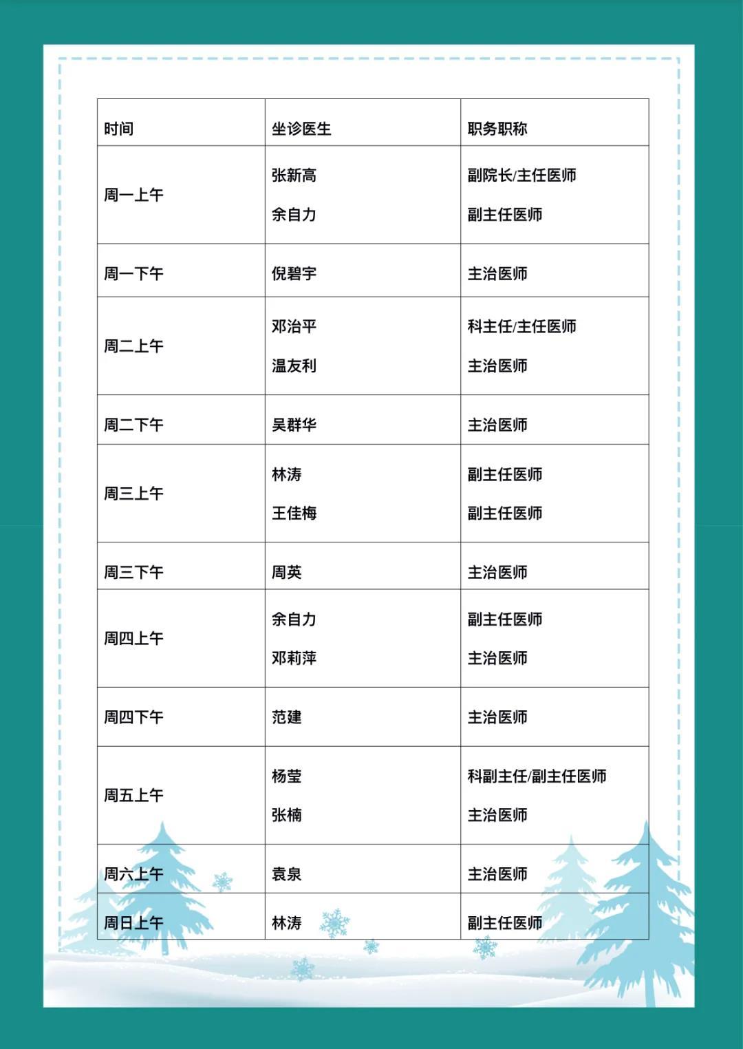 自贡市第一人民医院呼吸与危重症医学科门诊医师及坐诊时间表: