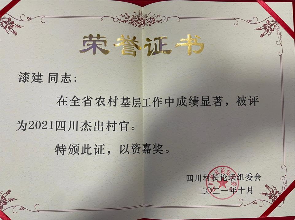 2018年7月,漆建为了圆自己“带领群众增收致富、受群众拥护爱戴的村支部书记”的梦想,放弃了自己精心经营且业绩正在蒸蒸日上的公司、放弃高收入,通过市、区组织部门公开选拔,被区组织部分配到遂宁市船山区桂花镇金井村担任“职业村支书”。