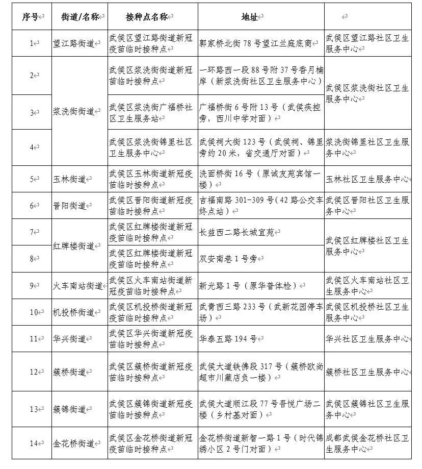 ●武侯区14家新冠疫苗接种点可提供“加强针”接种服务。