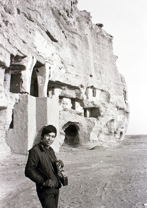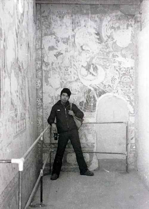 1979年敦煌高小华在莫高窟的一处废墟洞窟外