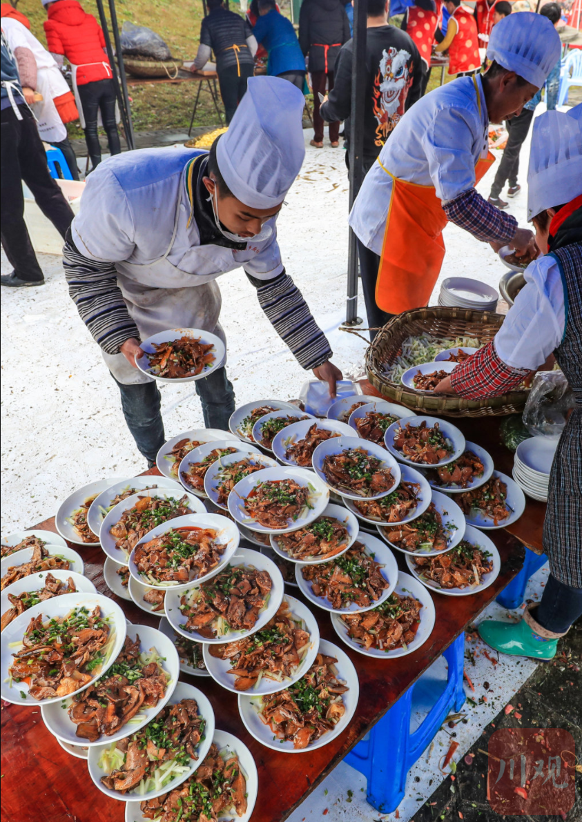 2020年1月18日,泸州市江阳区分水岭镇董允坝蔬式生活广场举办的一场年猪宴。(川观新闻资料图片,摄影:刘学懿)