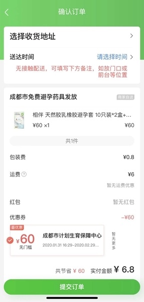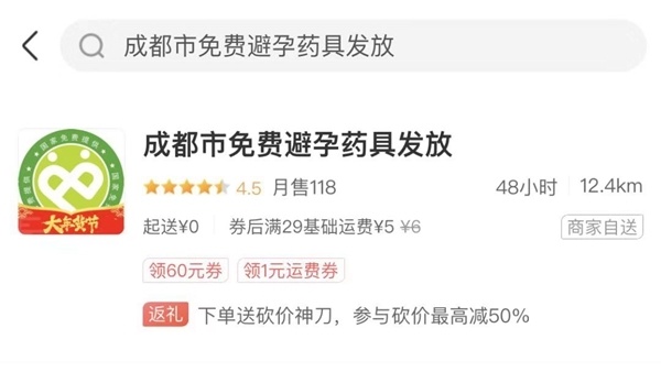 据成都市卫健委介绍,成都市计生保障中心利用“京东到家”“成都市免费避孕药具发放”门店,为群众增加一个通过网络领取免费避孕药具的新方式,提供物流送货上门服务。