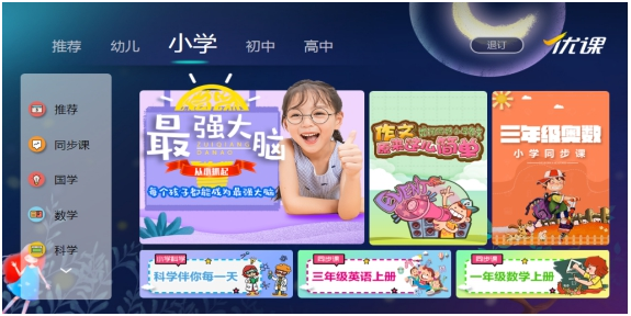 (一)小学专区。汇集语数外课程名师编排,同步我省教材,大屏从一年级到六年级各学科同步教学、讲解学习技巧、解题方法。