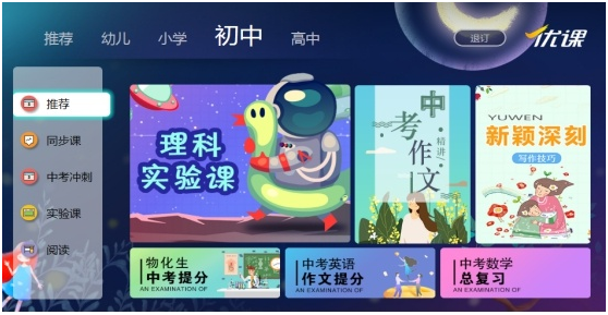 (二)初中专区。同步初中各年级各学科教学,集语文、数学、英语,史地政、物化生,理科试验课、中考等大咖精品课专题,同时集国内名校名师精品课,足不出户就可以同步享受优质的教学服务,夯实基础,强化知识。