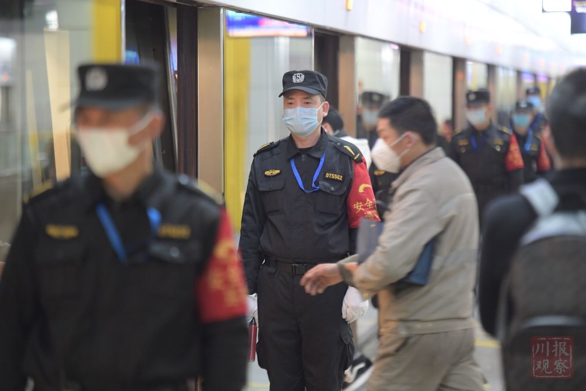 尽管复工后的首个地铁早高峰,成都并未迎来超大客流,但安全防控一点也没放松。