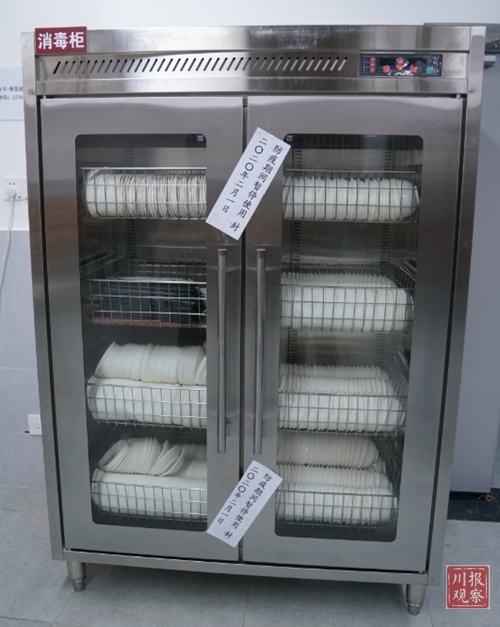 记者看到,食堂公共餐具柜已被贴上了封条、暂停提供公用餐具,大部分干部都根据要求从家里自带餐具。对忘带餐具的,食堂也可提供一次性饭盒。